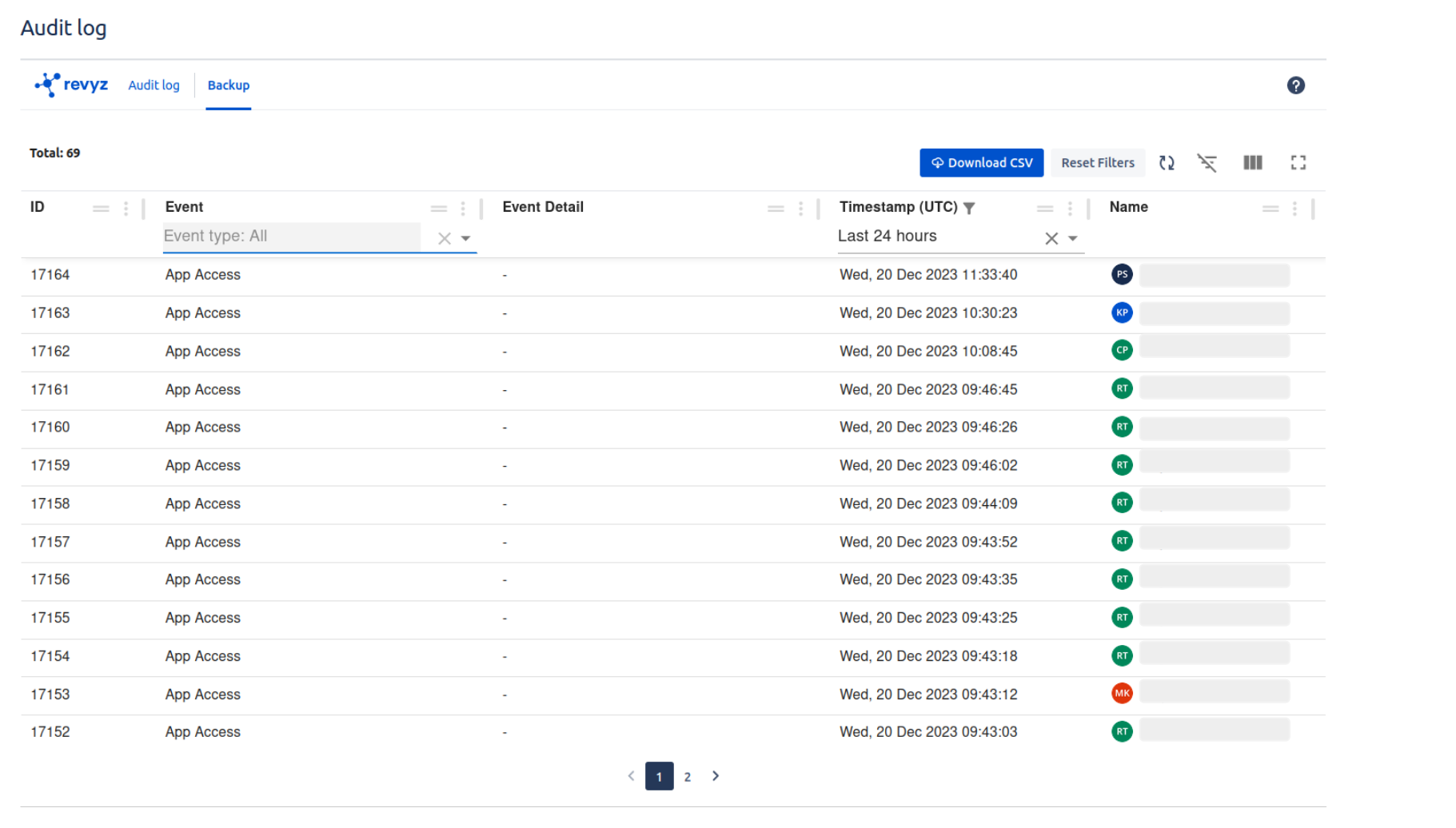 Restore - You can check all actions taken related to restore jobs. you can filter specific event type if you want to see the logs of particular event