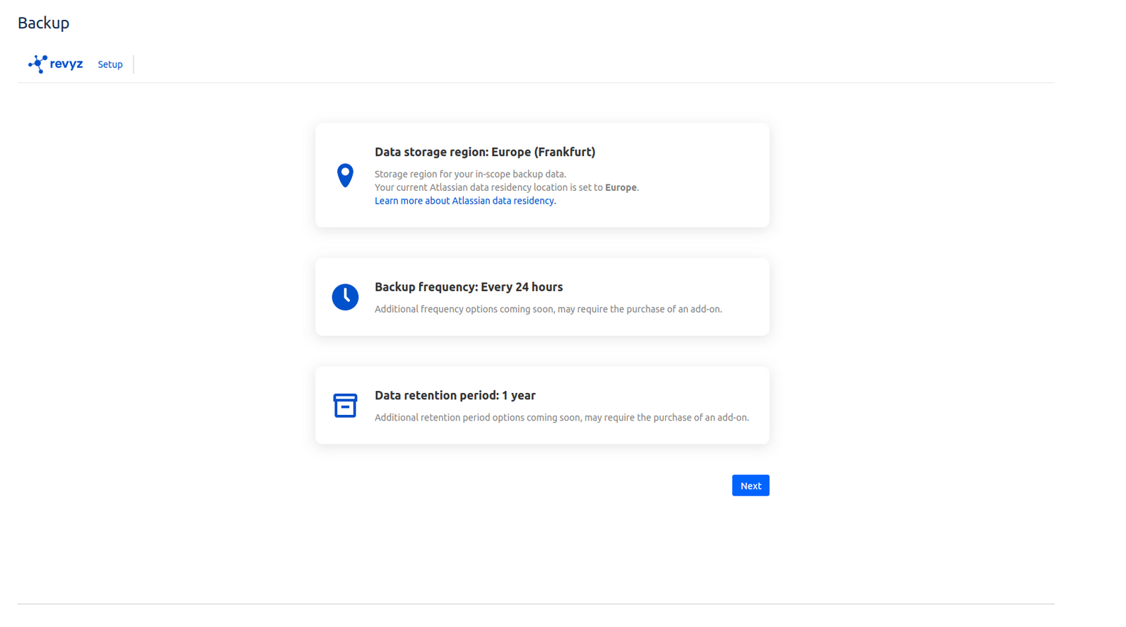 On second page, you will get information about region (where your data is stored), Backup frequency & Data retention period