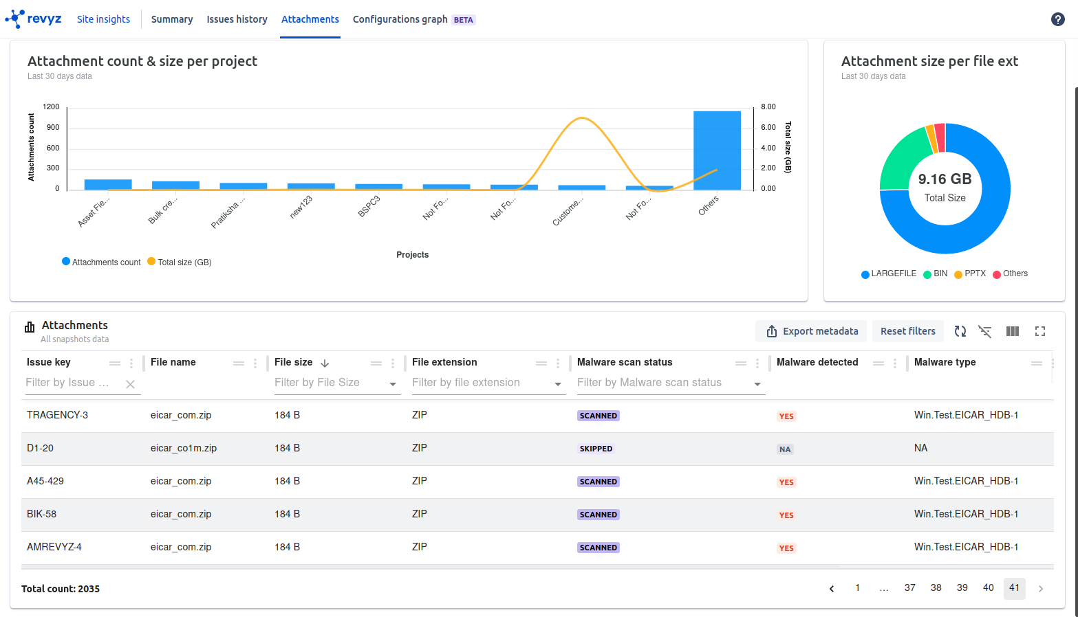 To see the status & type of malwares - click on Site insights in left navbar - > Select Attachments on top navbar