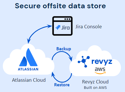 Once the Revyz Data Manager app has been installed in your site, data from your Jira cloud site is automatically backed-up every 24 hours into the secure Revyz cloud data store. The Revyz cloud is built on AWS’s public cloud infrastructure.
