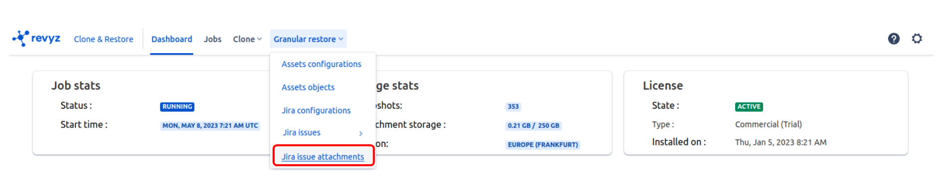 Click on Clone & Restore in left navbar - > Click on Granular restore in top navbar