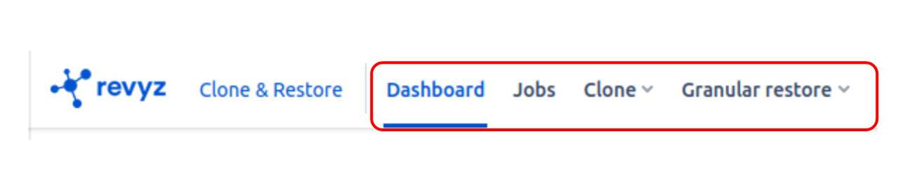 Dashboard - Shows you a quick status of all your scheduled & historical restore & clone jobs / operations, number of backup snapshots available for restore, amount of attachment storage consumed and license status